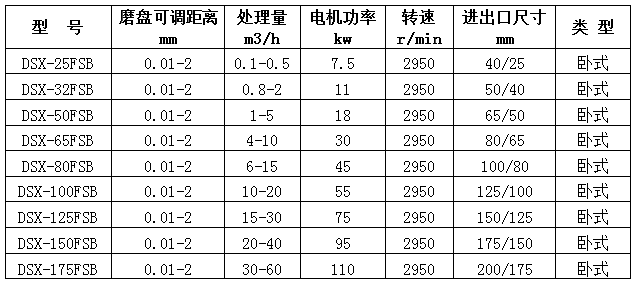 注:①表中流量范围是水作参数,处理量大时,请在出口处增加相匹配的泵输送。